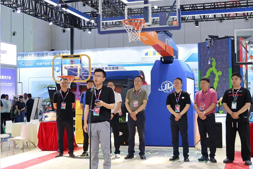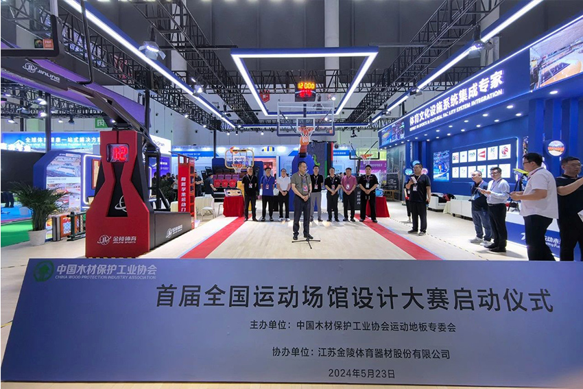 展會期間由中國木材保護工業(yè)協(xié)會運動地板專委會主辦的首屆全國運動場館設計大賽啟動儀式在金陵體育展位舉行,金陵體育總經(jīng)理李劍剛出席并致詞。