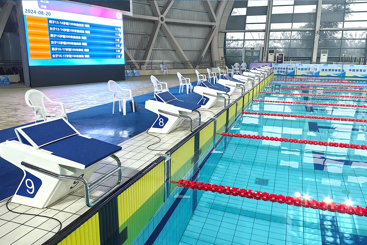 8月23日, 2024年江蘇省青少年游泳錦標(biāo)賽 在連云港體育中心游泳館精彩謝幕。金陵體育作為本次賽事的器材供應(yīng)商和賽事服務(wù)商為本次賽事提供了計時記分系統(tǒng)、仲裁錄像系統(tǒng)、視頻直播系統(tǒng)等電子設(shè)備以及場地泳道線、出發(fā)臺等競賽器材。